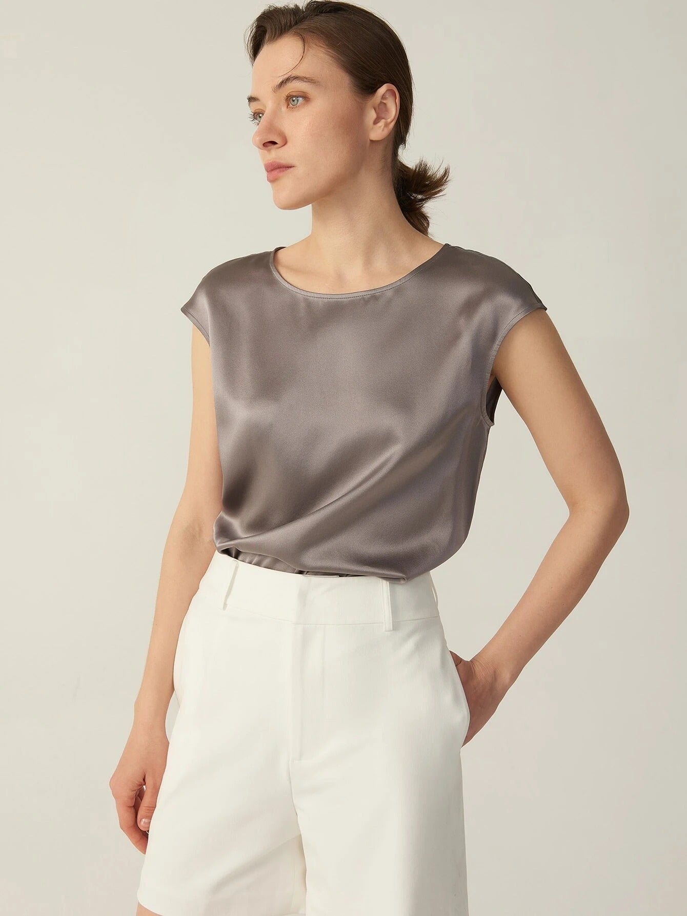 I just love this top. I am comfortable in this lightweight silk. It's very breathable and it looks classy and very versatile.