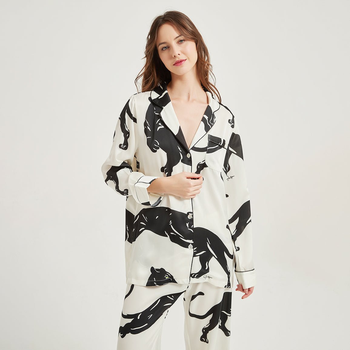 Style: Two-piece silk pajamas set
